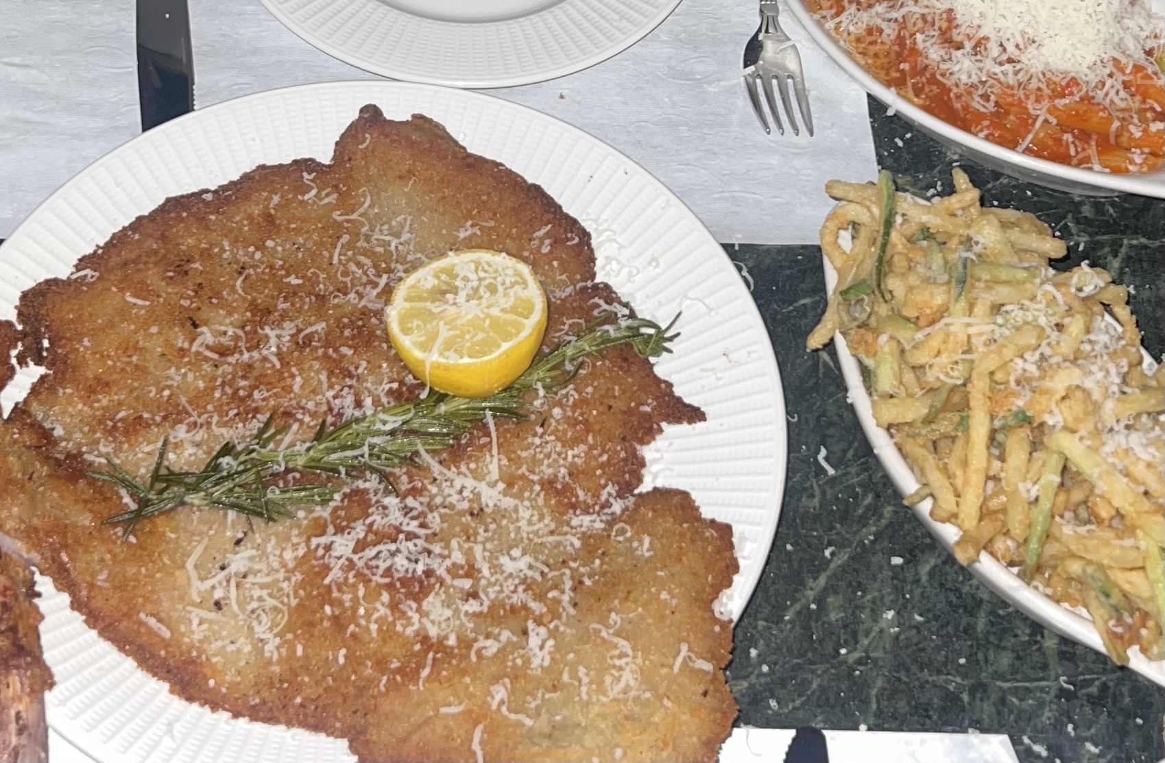 The 4,500-square-foot destination captures the essence of lingering, soulful Italian dinners, bringing that spirit to the heart of Miami Beach. The space feels like a cinematic set from the 1930s- deep green walls and warm, aged wood finishes create an intimate, moody backdrop, while ornate chandeliers cast a golden glow over a collection of Leonardo da Vinci-inspired artwork that pays homage to the restaurant’s namesake.